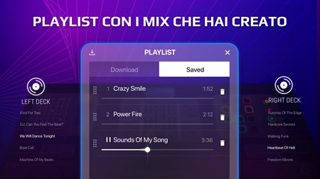 Attenzione! Alcune funzionalità sono disponibili solo con l'abbonamento premium o durante il periodo di prova: - Tutti gli effetti audio - Tutta la raccolta di brani - Tutte le pelli di giradischi e mixer