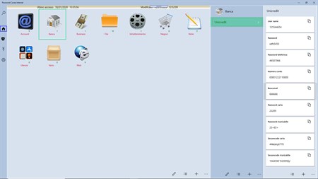 Con Password Caveau puoi nasconde password e testi con la massima sicurezza sia da PC, Tablet e Smartphone. Criptato con un algoritmo che ti offre la massima sicurezza, potrai avere le tue password sempre a portata di mano, con una grafica semplice e intuitiva, con una ricerca veloce delle tue password