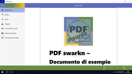 Con PDF swarkn è possibile non solo visualizzare i documenti PDF, ma anche modificarli con utili funzioni. Unire più documenti PDF o rimuovere parti di un documento PDF esistente? Nessun problema. Con molta semplicità, è inoltre possibile aggiungere una filigrana a un documento PDF evidenziandone la sua riservatezza. Scarica subito l'applicazione. Molte altre caratteristiche come annotazioni, allegati, protezione con password, sfondi e la possibilità di esportare un PDF come immagine, sono già in fase di sviluppo.