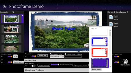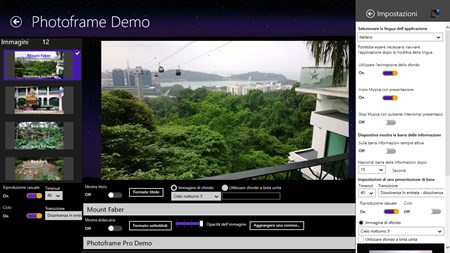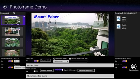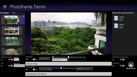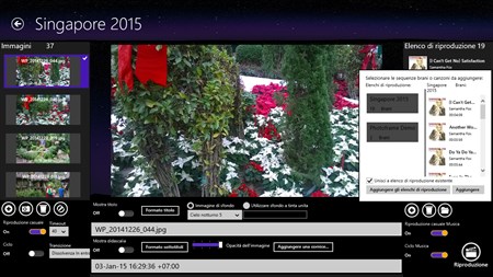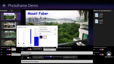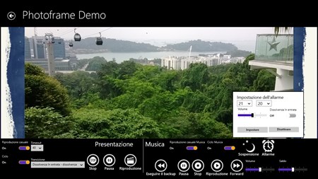 Creare bellissime presentazioni dalle tue foto e condividerle con amici e familiari. Aggiungere la tua musica preferita alla presentazione, aggiungere titoli e sottotitoli di colore e dimensioni diverse per ogni immagine. Selezionare diverse transizioni e timeout. È possibile scegliere uno degli sfondi costruiti in o aggiungere il proprio sfondo. Scegliere tra 30 diverse cornici per migliorare le immagini. È possibile riprodurre le diapositive uno alla volta o in modo casuale. Il lettore musicale permette di Shuffle, Loop, avanti e indietro e le impostazioni di Volume e bilanciamento. Scattare nuove foto direttamente dall'app e condividerli con i tuoi amici, come una bella presentazione, anziché manualmente scorrendo attraverso di loro. Tutte le foto scattate dall'app verranno salvate anche alla tua libreria di immagini. Creare slideshow direttamente dalla vostra libreria di immagini. Immagini aggiunte alla libreria vengono aggiunti automaticamente alla tua presentazione. Salvare la presentazione completa in qualsiasi unità esterna e condividerlo con i tuoi amici. Impostare il timer di spegnimento per interrompere la presentazione automaticamente. Impostare la sveglia per svegliarsi con la tua foto preferita e la canzone del mattino.