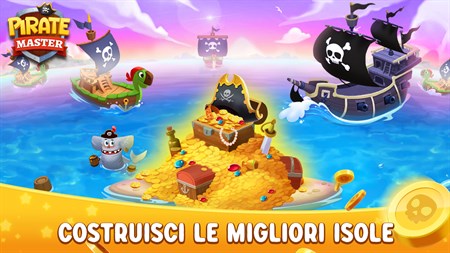 Pirate Master co-pubblicato da MIRACLE GAMES INC, è un gioco casual di monete con il tema dei pirati. Puoi esplorare molte bellissime isole in questo regno dei pirati! Andiamo! Diventerai un ricco re dei pirati per costruire ed esplorare isole dal design squisito vincendo monete da giri, attacchi e incursioni e divertiti a interagire con i tuoi amici.