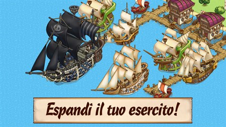 SVILUPPA UNA FLOTTA INARRESTABILE Personalizza le tue navi pirata con un sacco di armi! Crea varie flotte e potenziale per avere a disposizione una forza prorompente.