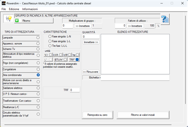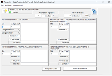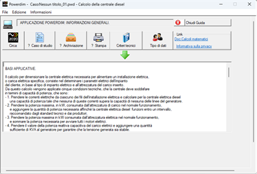 Powerdim abilita un utente generico dimensionare la centrale diesel di generazione di energia necessario per supportare l'alimentazione elettrica della propria casa, stabilimento commerciale, azienda industriale o progetto; Questo viene fatto selezionando pulsanti di opzione e caselle di controllo, senza richiedere conoscenze tecniche avanzate. Questa applicazione è il risultato di 15 anni di esperienze pratiche, che convalidano l'applicabilità dei suoi risultati.