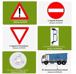 - Puoi anche CREARE una scheda con PIÙ ARGOMENTI sia quelli comuni alla Patente B che quelli proprio delle Patenti Superiori (es. segnali di Pericolo+ Impiego del CRONOTACHIGRAFO , ecc.)