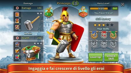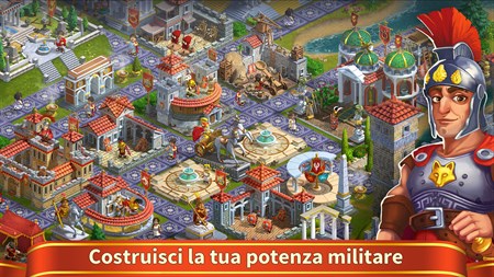 Cesare! Devi assumere il comando di un insediamento romano e renderlo un Impero Romano prospero e potente! Con un Generale come te, Roma riconquisterà la sua antica gloria! Ora, l’insediamento è in declino. Incursioni continue, saccheggi dei barbari e attacchi dei pirati non lasciano vivere in pace i Romani. I guerrieri romani sono forti e coraggiosi, si battono come dei leoni, però manca loro un leader esperto. Un generale forte, tattico e stratega. Imperatore, oltre alle legioni e alla flotta romana, al tuo comando vi saranno due abili consiglieri: Ovidio e Asteria! Ovidio è un comandante esperto, tattico e strategico, che si è formato nelle battaglie con i barbari. Ha partecipato alle grandi guerre imperiali con il regno di Elvinar, il potente impero di Sim e l’isola del crudele clan dei Vichinghi. E’ stato premiato con gli Ordini del Ghiaccio e del Fuoco, che è l’onorificenza più alta dell’Impero Romano! Ovidio è l’ammiraglio capo dell’Impero Romano e su di lui si creano in continuazione leggende. La conquista di nuove terre è già incominciata! Asteria ha una mente acuta e flessibile, sa come pianificare adeguatamente la costruzione e la vita di un insediamento romano. Sa anche come costruire vari edifici di produzione, architettonici e culturali di Roma, e anche come costruire e gestire vie commerciali. Sa come negoziare con le tribù, i villaggi e le città vicine. Ti aiuterà nella conduzione diplomatica degli affari al fine di giungere a una conclusione pacifica di ogni guerra. Asteria è una vera forgia del grande Impero Romano! Con un Imperatore come te e consiglieri così abili, per l’Impero Romano si inizierà una nuova alba! L’intera civiltà è nelle tue mani. La strategia di sviluppo di tutto l’Impero Romano dipende solo da te! Grandi guerre e conquiste, costruire una nuova città, impossessarsi di nuovi territori, addestrare soldati, apparecchiature, produzione di risorse e di beni, battaglie e commerci navali, incursioni e segrete, centinaia di interessanti ricerche e missioni, battaglie sulla mappa globale con altri giocatori: tutto questo sarà disponibile per voi! Un gioco di costruzione di una città! Imperatore! L’Impero Romano sei tu!
