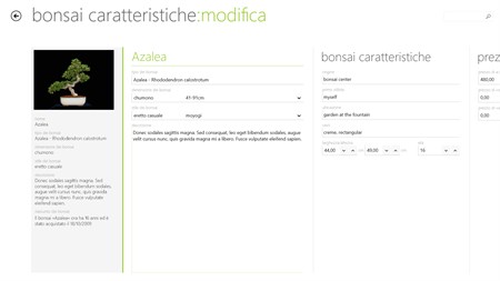 »sammler:bonsai« è un'applicazione che vi aiuterà a gestire la vostra collezione di bonsai. È possibile organizzare la vostra raccolta secondo diversi criteri e categorizzare le caratteristiche specifiche di ognuno dei vostri bonsai. Inoltre è possibile creare album fotografici dei bonsai e documentare la loro coltivazione e la cura in una biografia.