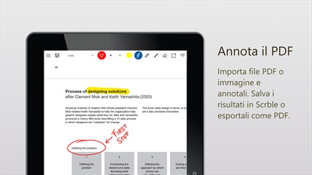 Scrble Ink è un'applicazione estremamente semplice per la scrittura a mano libera su tablet Windows. L'inchiostratura di Scrble è reattiva e divertente. È possibile inchiostrare con una penna o un dito e utilizzare due dita per ingrandire o spostare la selezione. Puoi importare immagini o PDF da annotare, convertire la tua scrittura in testo o utilizzare forme geometriche per annotare i tuoi disegni. Scrble Ink funziona su tutti i tipi di touchscreen, ma è particolarmente divertente con una penna digitalizzata come Microsoft Surface Pen. Ti suggerisco di guardare questo breve video per vedere Scrble Ink in azione: https://www.scrble.com/tutorials Grazie per il tuo interesse e ti auguro felice scarabocchiare