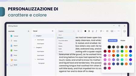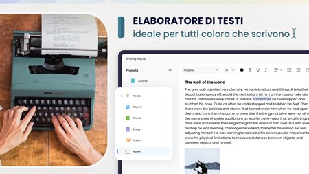 EDITOR DI TESTI FUNZIONALE > Correttore ortografico; > Contatore di parole e caratteri; > Set di caratteri; > Aggiunta di immagini; > Esporta in formato PDF, Docx, TXT, MD e PNG.