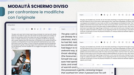 COMODE MODALITÀ DI VISUALIZZAZIONE Oltre a utilizzare la modalità standard è possibile: > nascondi tutte le barre dei menu e lavora in modalità a schermo intero; > dividi lo schermo per modificare il documento e confrontare la versione corretta con quella originale.