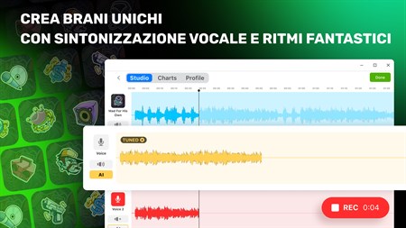 LA VERSIONE A PAGAMENTO DELL'APPLICAZIONE COMPRENDE: - Accesso illimitato a tutti i beat - la possibilità di utilizzare l'autotune - la possibilità di registrare un numero illimitato di tracce - battiti esclusivi e nuovi ogni mese *Questa funzionalità è limitata nella versione gratuita