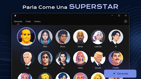 CHATTA CON UNA STAR Hai mai sognato di avere una conversazione con una star famosa? Ora puoi! Basta digitare il testo, selezionare la celebrità e assistere alla magia dell'intelligenza artificiale che fa il resto.