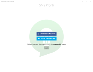 * SINCRO tramite FACEBOOK Registrandoti tutti i tuoi invii o impostazioni saranno memorizzati e sincronizzati con il sito e se farai una nuova installazione i dati saranno sempre mantenuti e sincronizzati, per esempio gli sms che non ti piacciono saranno sempre esclusi dall'elenco o le categorie preferite sono memorizzate.