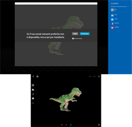 Sprout Hub permette di condividere agevolmente i progetti o i contenuti di Sprout Workspace su Facebook, Twitter o qualsiasi altro social network disponibile tramite l'accesso 'Condivisione' di Windows. Sprout Hub è accessibile tramite il pulsante Condividi in Sprout Workspace.