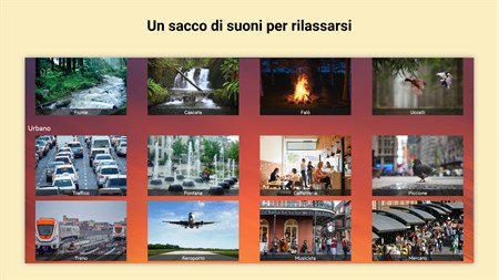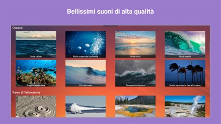 Scegli tra oltre 70 suoni rilassanti unici in varie categorie tra cui onde dell'oceano, pioggia, animali, acqua, natura, tagli di capelli, sussurri, strumenti musicali e altro ancora.