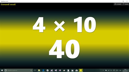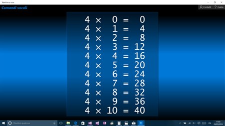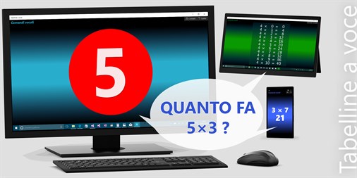 "Tabelline a voce" unisce le più moderne tecniche di sintesi vocale (Text-To-Speach) e riconoscimento vocale (Speech Recognition) ad una grammatica complessa, è così in grado di dialogare ed interpretare semanticamente sinonimi e frasi articolate in lingua italiana allo scopo di esercitare e provare la propria preparazione sulle tabelline in modo assai naturale. Per fare ciò non è richiesta alcuna connessione dati, è un'app Universal Windows Platform ed è quindi in grado di funzionare su telefoni, tablet, PC, lavagne Lim, … insomma ovunque sia installato Windows 10 ! Risulta particolarmente adatta per stimolare e rafforzare la memorizzazione mnemonica della tavola pitagorica nei bambini e in chiunque lo desideri anche mediante il semplice dialogo, raccomandata quindi anche per i non vedenti.