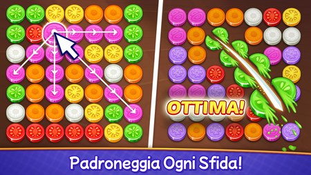 Giocate e divertitevi con la modalità classica di questo gioco di abbinamento di verdure. È possibile scegliere tra diverse dimensioni della griglia. Una griglia più grande significa più verdure da tagliare. Dovrete usare il pensiero strategico per pianificare le vostre mosse e trovare il modo migliore per eliminare ogni puzzle di verdure. Se vi bloccate in qualche punto del puzzle, potete usare il power-up Suggerimento per aiutarvi.