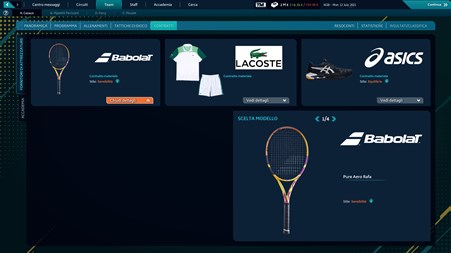 Gestisci la tua squadra Gestendo il programma della tua squadra di professionisti, potrai plasmare i giocatori a tuo piacimento. Imposta le tue routine di allenamento oppure segui i consigli del tuo staff. Scegli i marchi delle attrezzature per ogni giocatori: nuovo look o grossi guadagni? A te la scelta. Avrai accesso a molti marchi iconici di questo sport, come Wilson, Lacoste o ASICS, e alle loro ultime collezioni 2021.