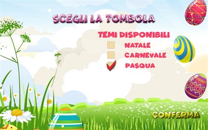Avrai a disposizione anche tre fantastici temi grafici da scegliere: il classico di Natale, quello di Carnevale e il tema Pasquale, con altrettanti jingle musicali di sottofondo e piccole animazioni.