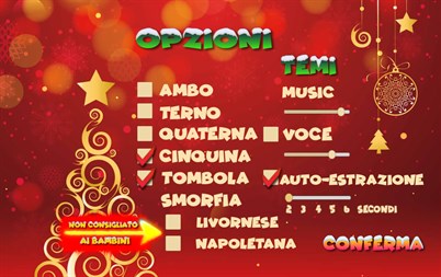 Avrai la possibilità di far leggere ad una voce femminile i numeri estratti, impostando anche l'auto-estrazione con il relativo intervallo di tempo e il volume.