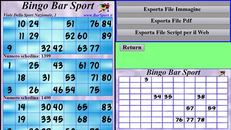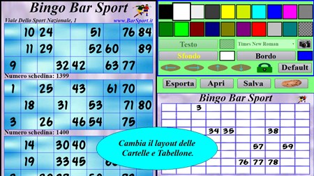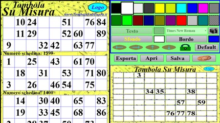 "Tombola su Misura" permette di personalizzare il tabellone e le cartelle, con una esportazione delle cartelle in file pdf per una stampa casalinga, o in immagini per una eventuale stampa professionale in tipografia.