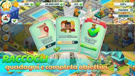 Caratteristiche chiave: ★ Gioco Sim casuale per tutti; gioco di simulazione di città facile da giocare per età maggiore ★ Sblocca oltre 300 edifici unici. ★ Costruisci su 6 isole uniche (altre isole in arrivo!). ★ Costruisci case e attira cittadini con decorazioni e edifici comunitari. ★ Ottieni profitti dalle tue attività. ★ Costruisci una città su diversi tipi di terreno: erba, spiaggia, acqua, roccia, deserto e altro ancora. ★ Sblocca edifici di trasporto come porti e aeroporti. ★ Visita le isole degli altri giocatori di tutto il mondo. ★ Raccogli premi e risultati giornalieri. ★ Lotta per la vittoria nella classifica. ★ Usa la tua immaginazione e creatività per configurare belle città. ★ Gameplay intuitivo con oltre 2000 sfide impegnative, ricompense e risultati ★ Immagini di alta qualità. ★ Supporto per grandi e piccoli schermi come i tablet. ★ Gioco gratuito: puoi giocare senza spendere soldi, ma noi offriamo acquisti in-app. ★ Semplicemente, uno dei migliori giochi di simulazione casuali