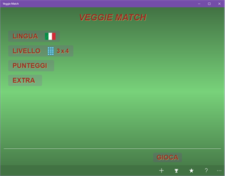 "Veggie Match" è un gioco divertente ed educativo che unisce un concetto di partita coppie di memoria popolare con un approccio facile da imparare a memoria i nomi dei verdure in varie lingue. Con "Veggie Match", si può praticare la pronuncia delle nomi di verdure in diverse lingue o rilassarsi con la modalità partita di singole coppie.