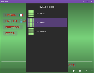 Caratteristiche principali: - Diversi livelli e opzioni tra cui scegliere - Supporta 3 livelli di difficoltà (facile, medio, duro) - Diverse lingue (7 lingue) tra cui scegliere (inglese, spagnolo, francese, tedesco, italiano, portoghese e russo - con altre ancora a venire) - Rapidamente imparare e ricordare come dire pomodoro, cetriolo, cipolla bianca, cipolla, aglio, carota, lattuga, patata, cavolo, cavolo bianco, ravanello, melanzana, fungo, zucchina, peperone, carciofo, mais, barbabietola, broccoli, avocado, spinaci cavolfiore, peperoncino, fagiolini, asparagi, zucca, sedano in inglese, spagnolo, francese, tedesco, italiano, portoghese e russo - Le tecnologie Text-To-Speech forniscono un modo semplice ed efficace per imparare parole e suoni stranieri. - Mantiene i migliori punteggi locali per tutti i livelli, modalità e lingue - Un gioco unico per imparare rapidamente le lingue straniere - Adatto per bambini, bambini in età prescolare e adulti - Ideale per i programmi di scuola materna e prescolare - Aiuta i bambini a memorizzare alfabeti e parole straniere - I bambini lo adorano! - Il miglior gioco di memoria con suoni e pronuncia - Impara inglese, spagnolo, francese, tedesco, italiano, portoghese e russo - È un gioco gratuito. - Uno dei migliori giochi di memoria di corrispondenza libera