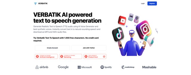 Verbatik is a Freemium App which allows users to generate up to 4000 free characters monthly on Free Plan.