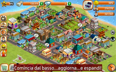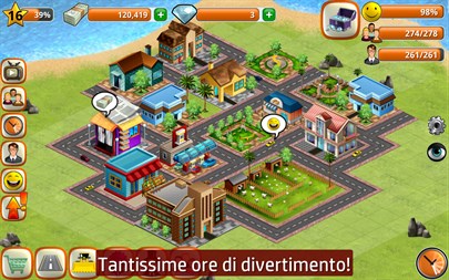 Se ti sono piaciuti i primi giochi di costruzione di città, questo gioco in cui un magnate costruisce una città fa proprio per te! Lo scopo di Village City - Island Sim è quello di costruire case, decorazioni e edifici ricreativi per la comunità e di creare lavoro per ricavare denaro dalla popolazione felice. Costruisci un impero finanziario con oltre 85 di edifici unici: hotel, cinema, uffici, panifici, ristoranti e persino piattaforme petrolifere. Puoi andare a pesca sulle tue barche e costruire parchi, scuole, chiese, biblioteche, musei e anche una ruota panoramica per rendere felice la popolazione. Il gioco si basa sull'equilibrio: una popolazione felice attira molte altre persone, che hanno bisogno di una casa e un lavoro. ** Caratteristiche** - Gioco GRATUITO - Grafiche di ALTA QUALITÀ - Gioco intuitivo - 85 edifici unici (residenziali, commerciali, ricreativi, decorazioni) - Attira persone piantando alberi, costruendo parchi e edifici ricreativi - Costruisci case per gli abitanti - Guadagna con i tuoi edifici commerciali - Ristruttura i tuoi edifici - Raccogli punti XP e aumenta di livello, così avrai accesso a nuovi edifici - Ricevi tantissime RICOMPENSE mentre giochi - Espandi la città: crea più spazio per costruire altri edifici ed ingrandire sempre più la città - Velocizza i tempi di costruzione e ristrutturazione - Aiuta la popolazione - Trova forzieri dei pirati sparsi per l'isola, pieni di soldi e oro - Inserisci i codici amico e i codici regalo e ricevi soldi e oro - Il "Consulente della città" ti dirà di cosa ha bisogno la tua città