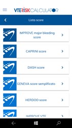 L’app “VTE Risk calculator” permette di valutare il rischio di evento tromboembolico e quello di sanguinamento nel paziente sottoposto a profilassi antitrombotica, in differenti tipologie di pazienti. La app usa diversi “score”, algoritmi di previsione del rischio internazionalmente validati nella comunità medica. La app utilizza informazioni routinariamente disponibili nella pratica dei Medici, consentendo di valutare rispettivamente il rischio di eventi tromboembolici e di sanguinamenti a seguito di trattamento antitrombotico. Questa app opera come calcolatore "off line", nondimeno utilizza il collegamento a Internet disponibile sul dispositivo per consentire l'accesso agli articoli scientifici (sia come pagine web sia come file PDF) citati come referenza di ciascuno score: Le ricordiamo che lo scambio di dati tramite internet potrebbe portare a costi specifici in base al piano di dati dell’operatore che sta utilizzando; consigliamo di evitare di utilizzare il trasferimento dei dati durante il roaming e di preferire i collegamenti in Wi-Fi. Nessuna responsabilità è assunta dall’Editore per eventuali inesattezze o imprecisioni d’alcun genere che potessero essere pubblicate. Questa applicazione non sostituisce in alcun caso né costituisce un parere medico, ma è esclusivamente uno strumento di calcolo realizzato utilizzando i due score indicati all’interno. In nessun caso, le informazioni pubblicate potranno essere considerate come invito all’utilizzo di particolari specialità farmaceutiche, gli Utilizzatori sono invitati, anche qualora ritenessero di riconoscere nei contenuti di questa applicazione condizioni a loro comuni, a consultare il proprio Medico curante per ogni decisione terapeutica, che è esclusivamente da affidarsi all’apprezzamento di professionisti competenti in materia. Le informazioni contenute in questa applicazione riflettono lo stato delle conoscenze mediche al momento della preparazione, nondimeno, per la possibilità comunque esistente di errori in qualsiasi fase di realizzazione e il continuo avanzamento della Scienza Medica, non è possibile garantire che le informazioni contenute siano accurate e complete in ogni loro parte, né può essere assunta alcuna responsabilità per errori od omissioni o per i risultati di decisioni assunte sulla base delle informazioni riprodotte, per tale motivo il Lettore è invitato a verificare l’attualità e correttezza delle informazioni riportate. L’utilizzo di questa applicazione presuppone e implica la Vostra espressa accettazione delle condizioni generali di utilizzo contenute all’interno dell’applicazione, condizioni alle quali la applicazione è distribuita. Tutti i contenuti di questa applicazione sono coperti da copyright a favore dei loro Autori e degli altri soggetti titolari di diritti. L’Editore ha compiuto ogni sforzo possibile per assicurare il riconoscimento dei diritti di copyright, e si dichiara fin d’ora pronto al riconoscimento di quelli relativi a utilizzi di immagini od altro per i quali non sia stato possibile raggiungere preventivamente il titolare. Nessuna parte dei contenuti di questa applicazione può essere tradotta, adattata, riprodotta, archiviata, elaborata, modificata in alcun modo o fatta oggetto di reverse engineering, con strumenti meccanici, elettronici o altri, al di fuori delle finalità proprie dell’applicazione e/o in concorrenza con i diritti esclusivi dei rispettivi titolari, senza il consenso scritto dei soggetti aventi diritto.