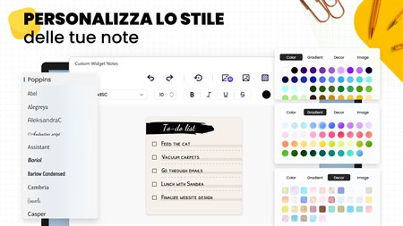 Tieni presente che la versione gratuita dell'app offre funzionalità limitate, vale a dire: 2 modelli, 3 colori preselezionati e un selettore di colori, 1 font gratuito, 3 colori di sfondo del widget preselezionati; è possibile creare solo 2 widget.