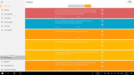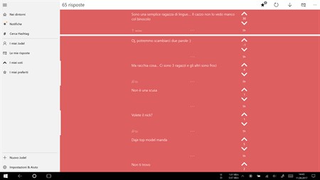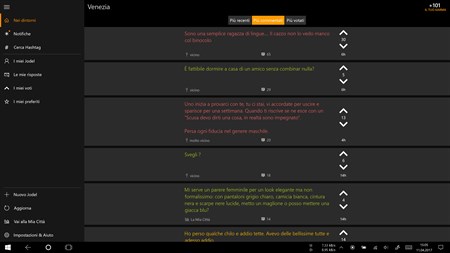 In più potrai sincronizzare i tuoi dati tra più dispositivi, ovvero avrai i tuoi Jodel, i tuoi voti e il tuo karma su tutti i tuoi dispositivi Windows 10 (è necessario che tu abbia fatto l'accesso con lo stesso Account Microsoft su tutti i dispositivi e un account OneDrive).