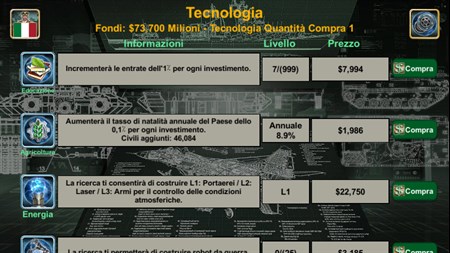 Come nuovo leader, il tuo obiettivo è di diventare il supremo leader. Usando tutti i mezzi possibili,dalla diplomazia alla guerra, devi tentare di costruire un impero, sia economicamente che militarmente, superiore a tutti gli altri. Sei pronto, Comandante Supremo? Il gioco è basato su un giocatore singolo contro un sistema di intelligenza artificiale molto intelligente, che simula gli eventi e si basa su status attuali dei paesi. Il nostro team colleziona e aggiorna giornalmente gli status dei paesi, basati su dati reali:economia, relazioni, status degli eserciti etc...
