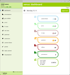 - Panoramica generale del dashboard I direttori d'albergo possono utilizzare questa app per visualizzare una panoramica online di arrivi e partenze, offerte effettuate, prenotazioni, ospiti in hotel, giro d'affari giornaliero, bevande e beauty sui propri smartphone.