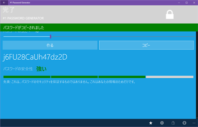 #1パスワードジェネレータでは、次のことが可能です。 - 1回のクリックで、強固な/推測しにくいパスワードを簡単に生成 - 他のアプリケーションで素早く使用するために、パスワードをクリップボードにコピーする - 独自の(または特定の企業の)パスワード要件を定義する - パスワードの長さを定義する - 番号を含める/除外する - 特殊文字の組み込み/除外 - あなたのニーズを満たす特定の特殊文字を定義する - あいまいな文字を除外する - パスワード強度のチェック(情報のみ) - 期限切れのパスワードを変更するようにリマインダーを設定する(Windows Phone 8.1のみ) - 無制限のパスワードを生成する - システム管理者または(システム管理者とシステム管理者)にとって素晴ら���いツール - Cortanaとの組み込み統合を利用し、音声コマンドを使用してパスワードを生成する - PasswordGen - Password Manager Appおよび1Passごとに1つのパスワード - 強力なパスワードジェネレータ このアプリケーションは、インターネット経由でパスワードを保存または送信しません。