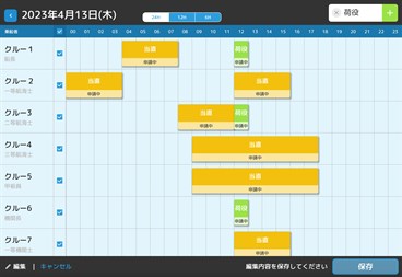 【特徴】 ・日々の労働時間を、船単位の日次船員一覧表に打刻することで陸上管理者に報告することができます。 ・指先やマウスで直感的に打刻を行うことができます。 ・1日単位で船員の打刻をまとめて承認することができます。 ・船員法に規定された労働時間規制のアラートを表示させ、船内での過労防止策をサポートします。