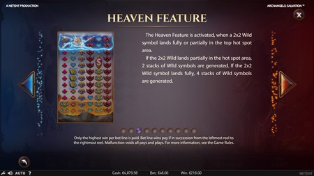 Archangels Salvation video slots features and bonuses Archangels Salvation is a six-reel, twelve-row online slots game with 100 paylines. This game comes with extraordinary bonus features which create further opportunities to win.