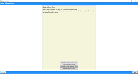 Balance sheet is a software that helps you in creating your balance sheet. It needs the journal, previous periods balance sheet and account definition for the computation.