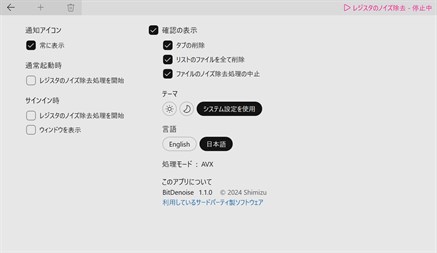 ファイルのノイズ除去: ストレージ上のファイルに対して処理を行います。 音声ファイルに対して処理を行うことで、高音質化が可能です。