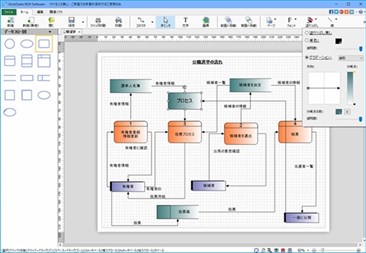 ClickChartsは直感的な作業でストレスフリーなチャート作成ができるフローチャート作成ソフトです。フローチャートやUML、ER図、データフロー図、組織図、ベン図、ブロック図、ブレインストーミング、マインドマップ、家系図、人物相関図、電気回路図など様々なチャートが誰でも簡単に美しく作成できます。豊富なテンプレートや記号、コネクタなどを搭載し、色や文字、画像などを自由に挿入するので思い通りのチャートを作成することができます。複数のチャートを一度に開いて編集・作成も可能なほか、継ぎ目のないオーバーラップ印刷を可能にすることで大きな図を作成して印刷することも可能です。ClickChartsでフローチャートを作成することでプロセスをビジュアル化して作業工程に発生する問題点などを素早く見つけることもできます。完成したチャートは簡単に印刷できるのはもちろん、様々なフォーマットの画像ファイルとして保存することも可能です。