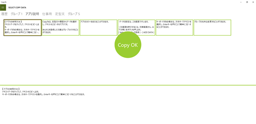 このアプリは、定型文や履歴からデータを選択し、テキストをコピーするアプリです。