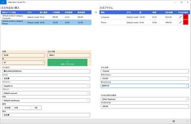 1回の注文で、複数の製品情報を追加し、さまざまな金額と製品在庫の統計を実行できます。 倉庫、支払い方法、サプライヤー、顧客、その他の費用などの注文関連データ。 すべての注文は、日付でフィルタリングおよび検索できます。