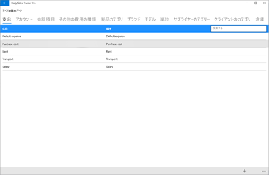 カスタム基本データ: 商品カテゴリ、ブランド、モデル、ユニット、サプライヤカテゴリ、顧客カテゴリ、倉庫、収益カテゴリ、支出カテゴリ、アカウント、請求項目、その他の種類の費用など。