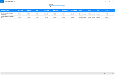 製品情報は次のとおりです。 商品サブカテゴリ、商品サブカテゴリ、購入価格、販売価格、原価、最低販売価格、最大在庫、最小在庫、初期在庫、モデル、ブランド、バーコード、ソート値、備考など。