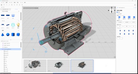 DataMesh Directorを使えば社内既存の3Dアセットを有効に活用し、インハウスで3Dモデルの運用に知見がない一般の方でもパワーポイントを編集する要領で簡単に3D教材の作成が可能になります。