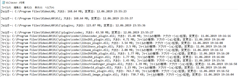 ファイルとフォルダのリストを視覚的なHTML形式または通常のテキストファイルに保存します。
