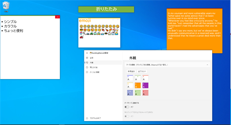 備忘録、TODO管理など、ビジネスでもプライベートでも便利なデスクトップの付箋ソフトです。シンプルな操作性とスタイリッシュな見た目が特徴です。 ・直観的に使える操作性 ・配色や字体を自由にカスタマイズ ・入力した文字は自動保存/履歴から復元が可能 ・付箋の折りたたみ/スナップ機能 ・絵文字/太字/斜体/下線/取り消し線/マーカー ・マルチモニター環境でも自然な使い勝手