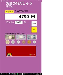 基本的なお金の勉強ができます。 提示された金額になるようにお金を選択します。