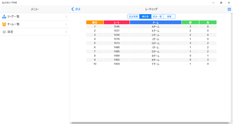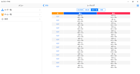 ■レーティング形式 試合を入力していくことで、各チームの強さ(レート)の数値が変動していきます。 ・最大20チームまで参加