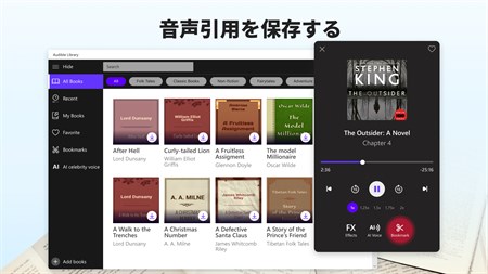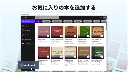 ãŠæ°—ã«å…¥ã‚Šã®æœ¬ã‚’è¿½åŠ ã™ã‚‹ å¤å…¸å°èª¬ã€æŽ¨ç†å°èª¬ã€ã¾ãŸã¯ãƒŽãƒ³ãƒ•ィクション本ãŒå¥½ãã§ã™ã‹ï¼Ÿ ã©ã‚Œã§ã‚‚好ããªæœ¬ã‚’é¸ã³ã€ãƒ‡ãƒã‚¤ã‚¹ã‹ã‚‰ç›´æŽ¥èžã‘ã¾ã™ã€‚